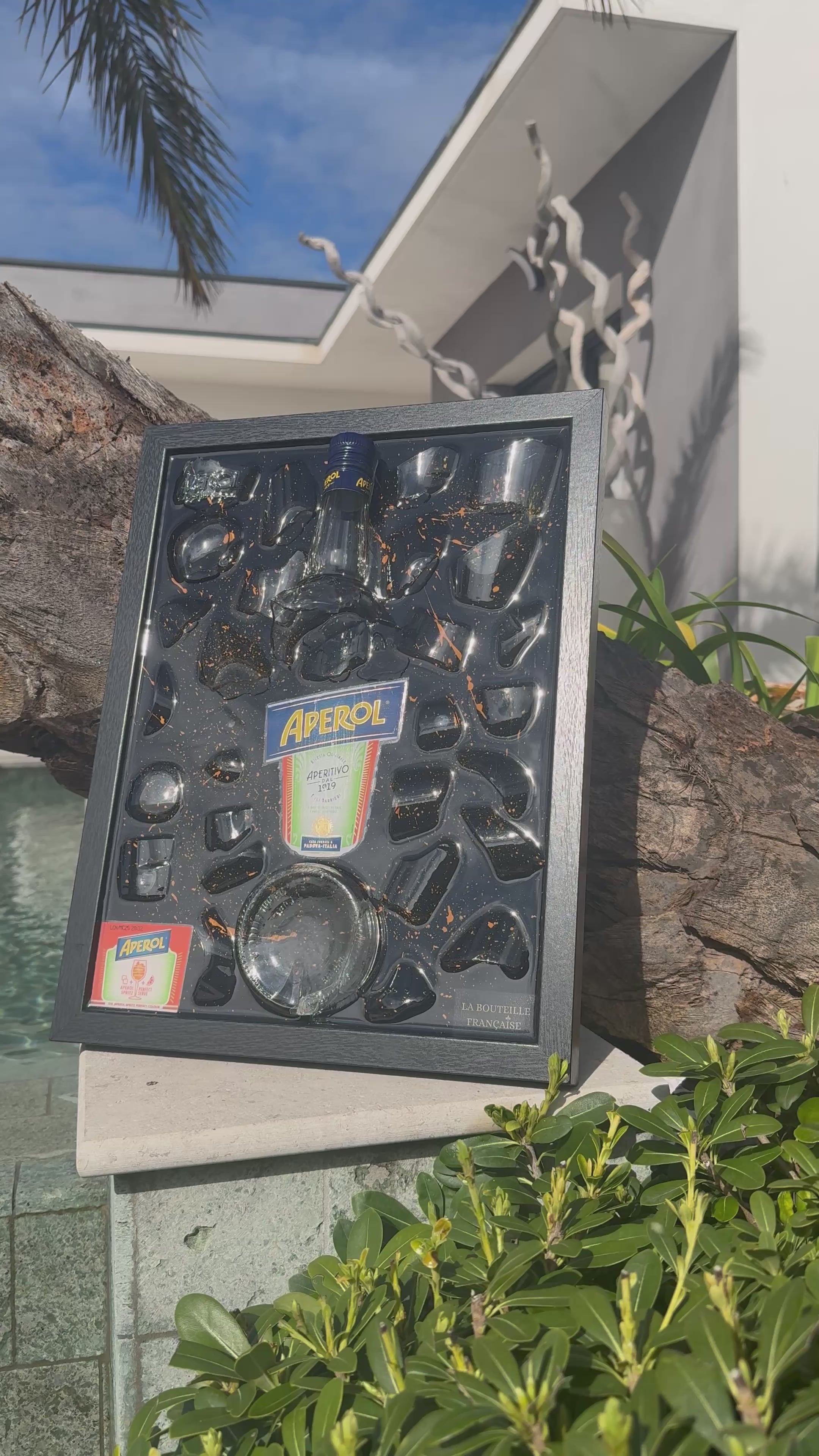 🍾 Ce tableau Aperol est une expression de luxe et d'art. 🇫🇷 Chaque pièce proposée par "La Bouteille Française" est unique et originale.