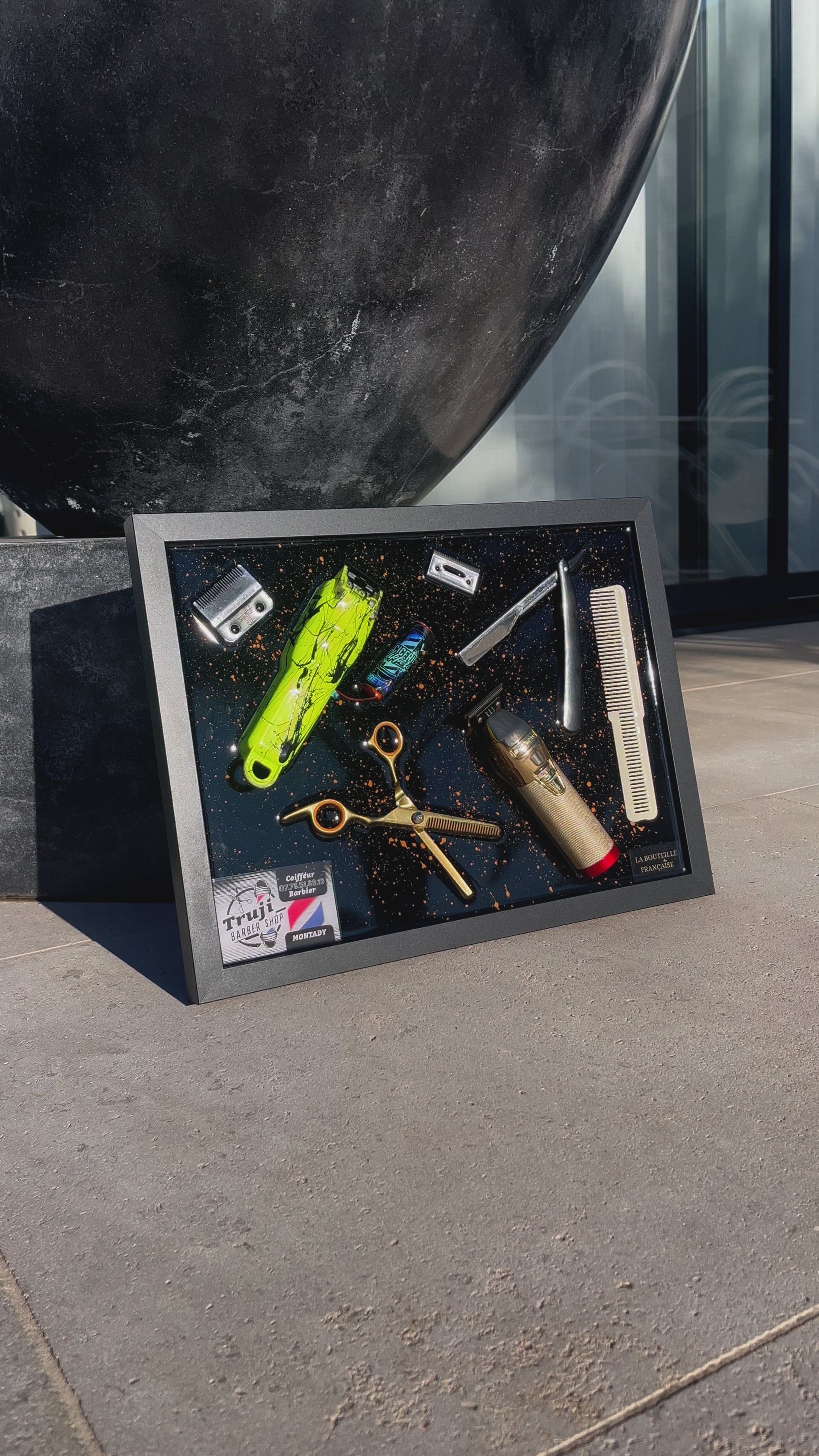 Vous souhaitez transformer vos outils de coiffure en tableau pour la décoration de votre shop ? 💈